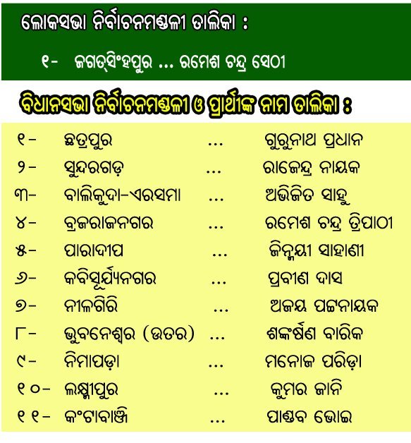 ଭାରତୀୟ କମ୍ୟୁନିଷ୍ଟ ପାର୍ଟି ପକ୍ଷରୁ ଲୋକସଭା ଓ ବିଧାନସଭା ପାଇଁ ପ୍ରାର୍ଥୀ ଘୋଷଣା